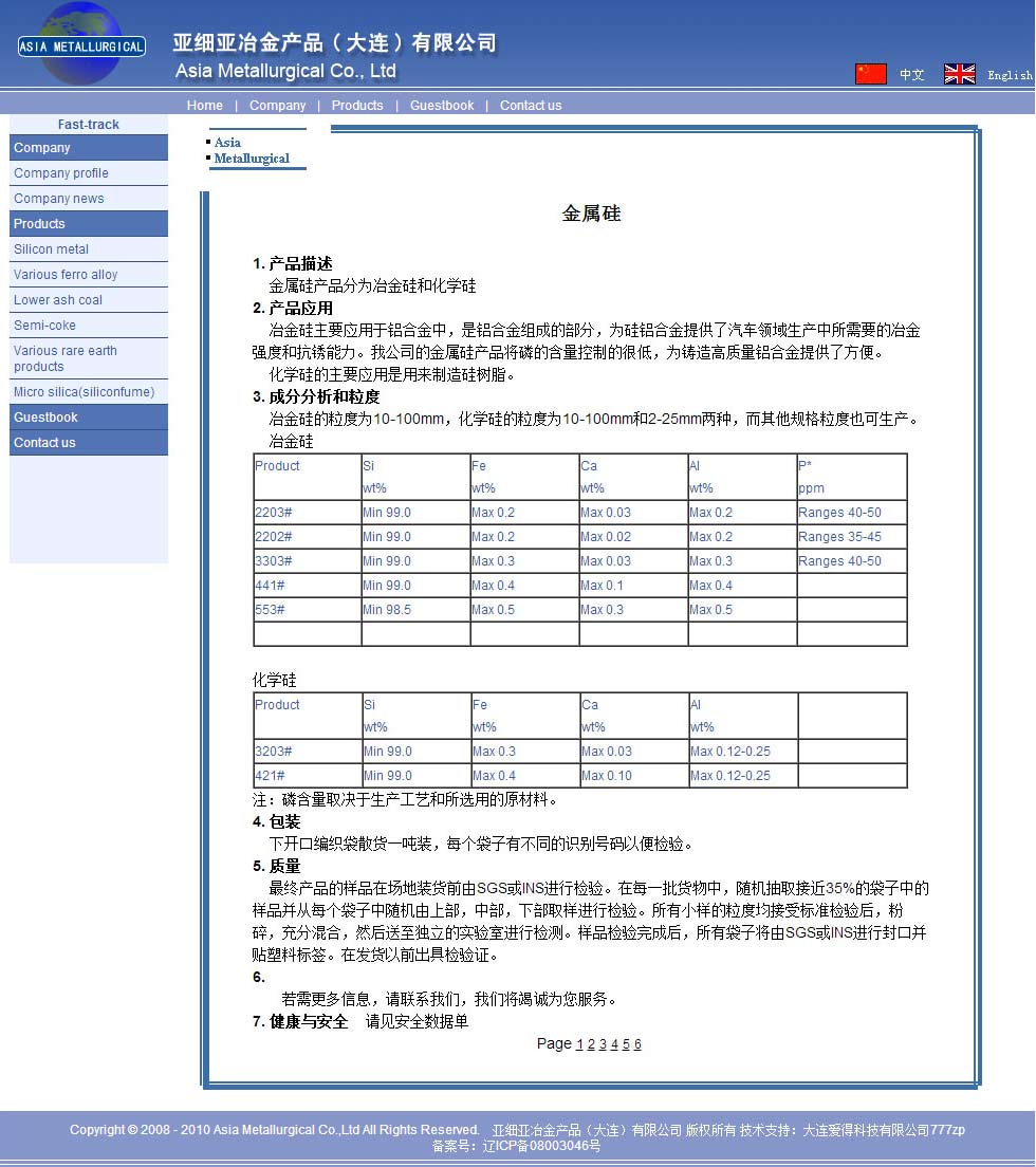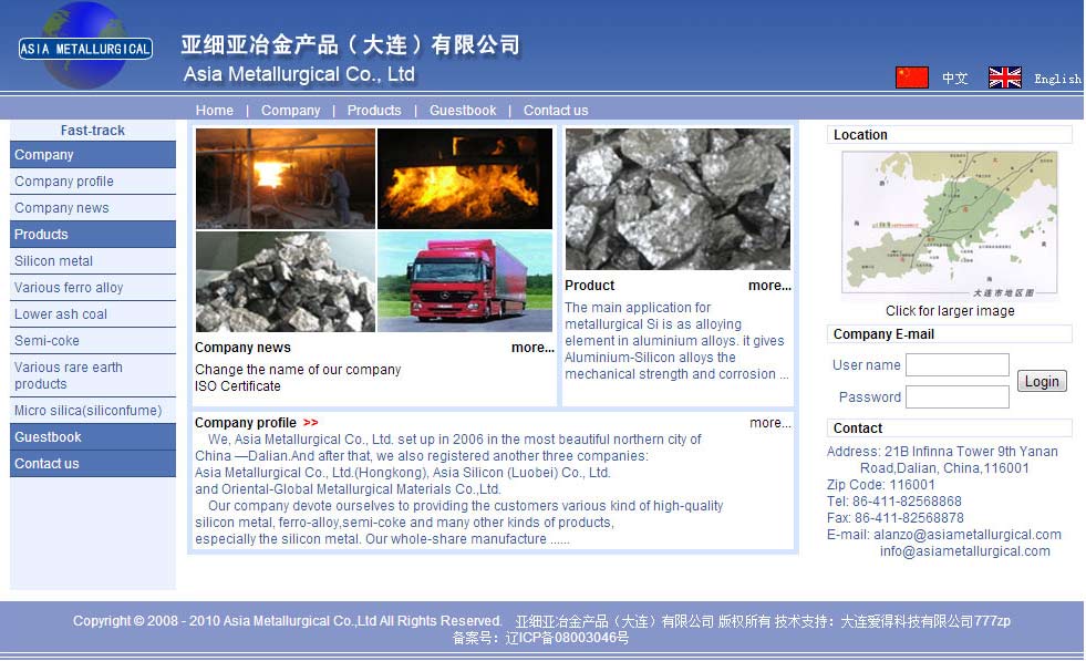 亞細亞冶金產(chǎn)品(大連)有限公司于2006年在中國--大連成立,現(xiàn)旗下公司:亞洲冶金有限公司(香港),蘿北亞細亞硅業(yè)有限公司,東方環(huán)球冶金材料(大連)有限公司。