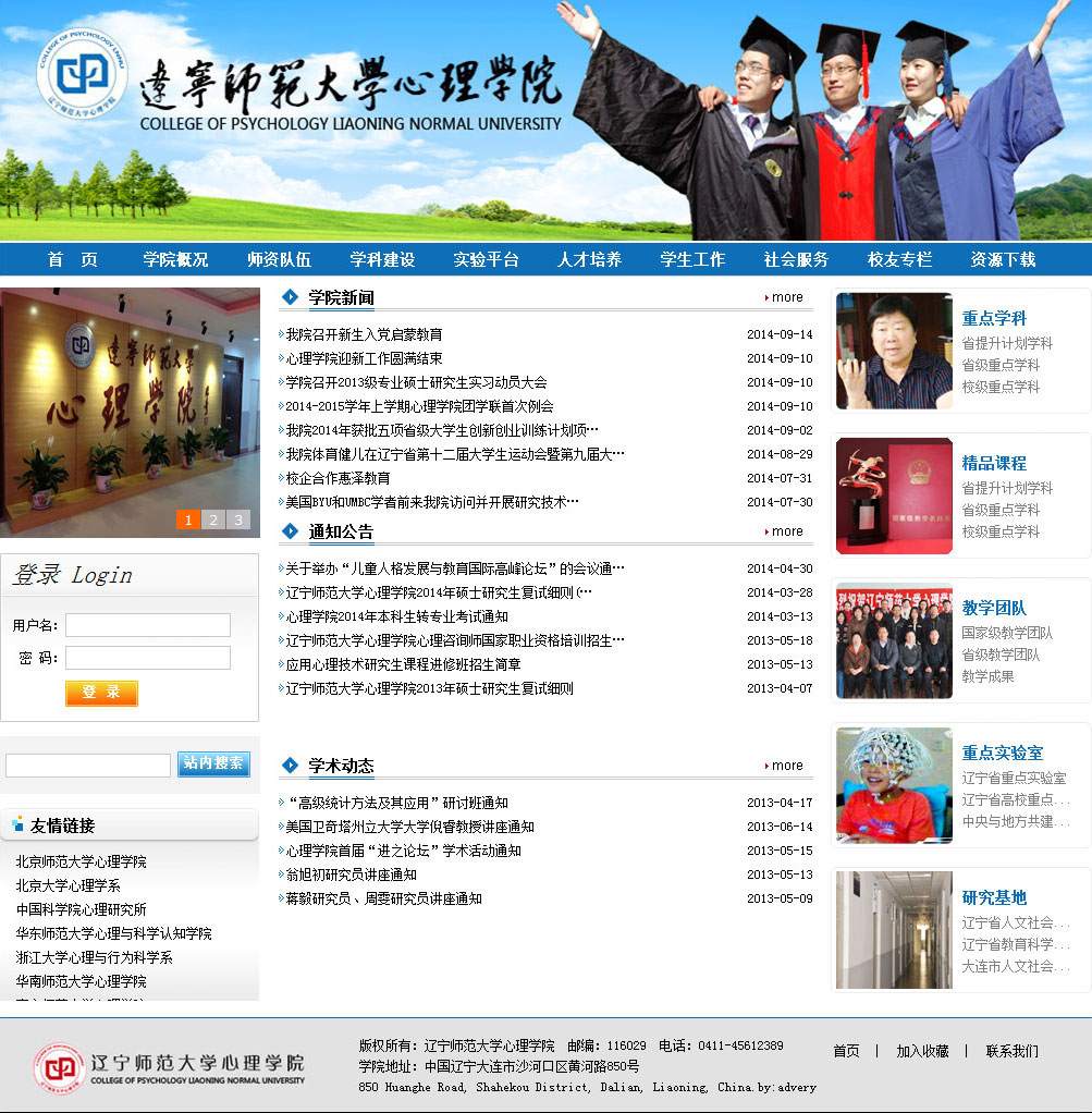 遼寧師范大學(xué)心理學(xué)院1982年成立教育系心理學(xué)教研室,并獲國(guó)務(wù)院批準(zhǔn)招收教育心理學(xué)碩士研究生;2011年獲批心理學(xué)一級(jí)學(xué)科博士學(xué)位授予權(quán);2012年正式成立遼寧師范大學(xué)心理學(xué)院。