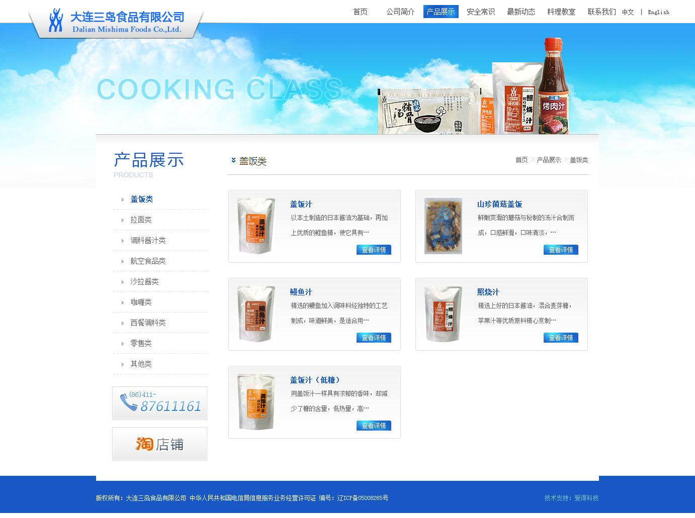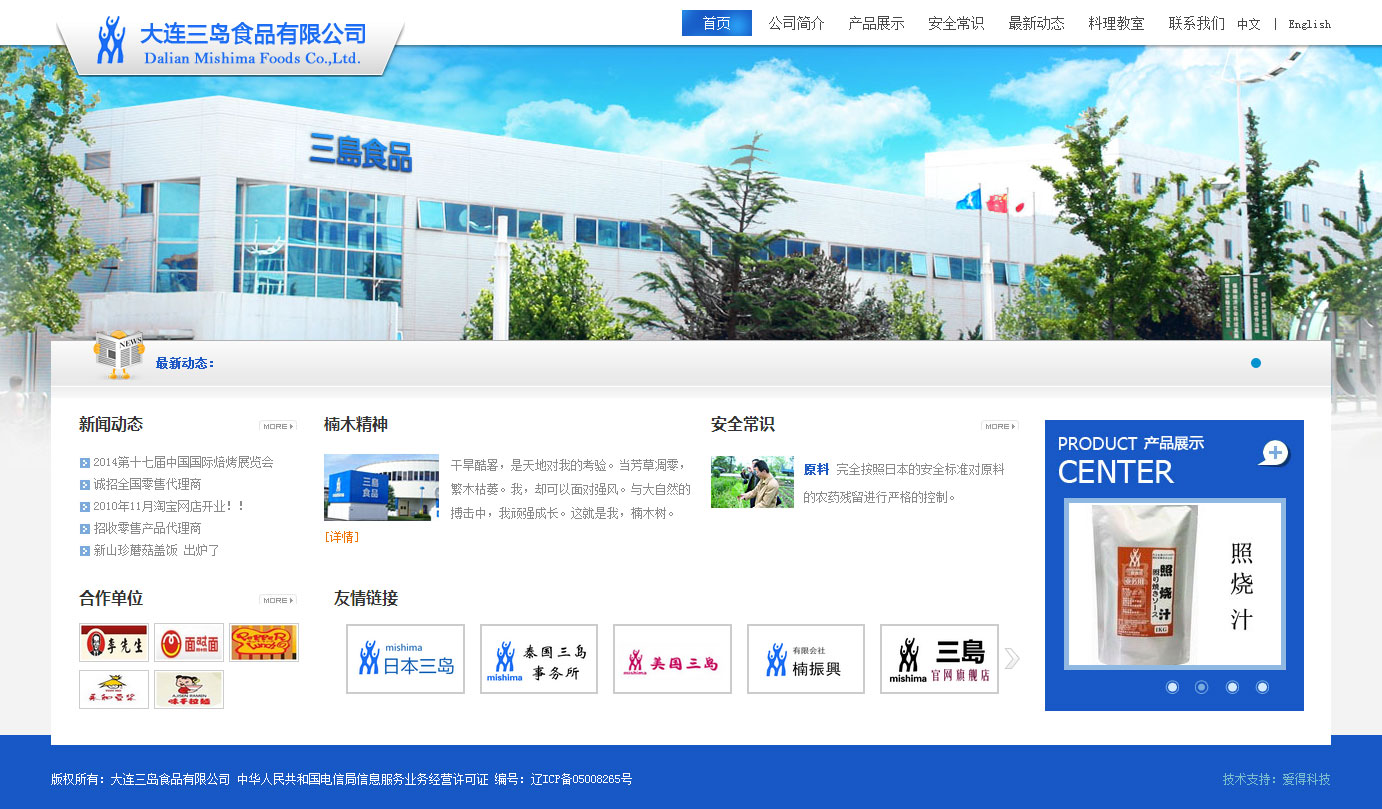 大連三島食品有限公司是一家日本獨(dú)資企業(yè),以生產(chǎn)高溫高壓殺菌的軟包裝罐頭、冷凍食品、干燥食品為主。產(chǎn)品主要出口日本、美國(guó)和歐洲等國(guó)家。公司提供殺菌食品方面的技術(shù)和咨詢等方面的服務(wù)。