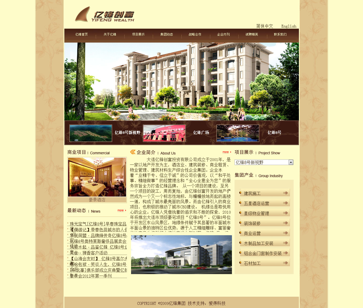 大連億鋒創(chuàng)富投資有限公司成立于2001年,是一家以地產(chǎn)開發(fā)為主,酒店業(yè)、建筑裝修、商業(yè)租賃、物業(yè)管理、建筑材料生產(chǎn)綜合性企業(yè)集團(tuán)。